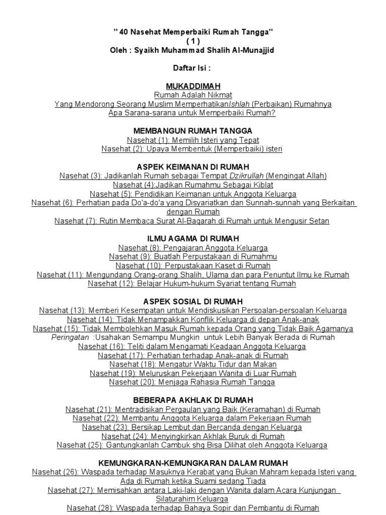 40 Nasehat Memperbaiki Rumah Tangga
