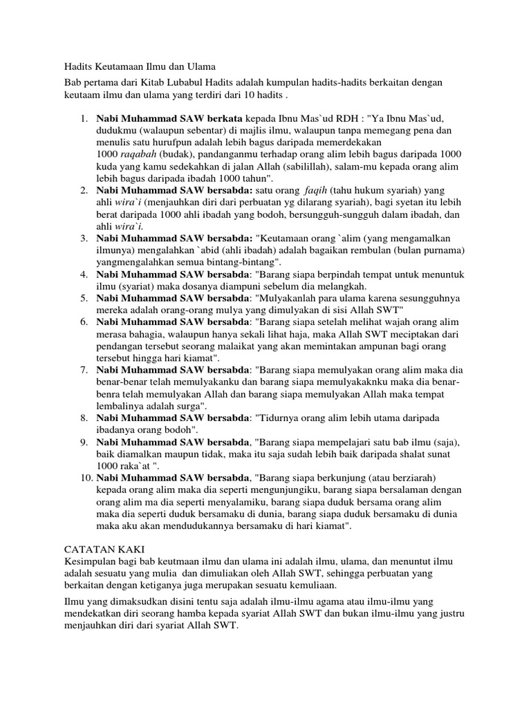 Doc Hadits Tentang Ilmu Pengetahuan Dan Keutamaan Orang