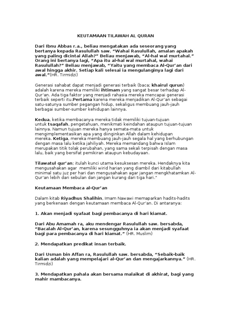 Doc Keutamaan Membaca Al Qur An Siti Novita Academia Edu