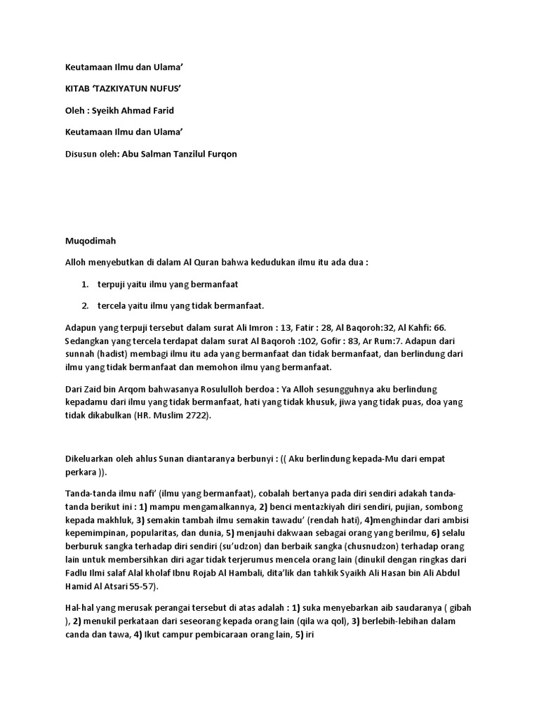 Hadits tentang keutamaan ilmu yang bermanfaat telah diriwayatkan oleh. Seolah olah ia tetap hidup dan amalnya tidak terputus. Harapan manusia menuju kebahagiaan yang kekal di akhirat nanti bilamana. Ini menujukkan keutamaan ahli ilmu atas ahli ibadah yang bukan ahli ilmu.